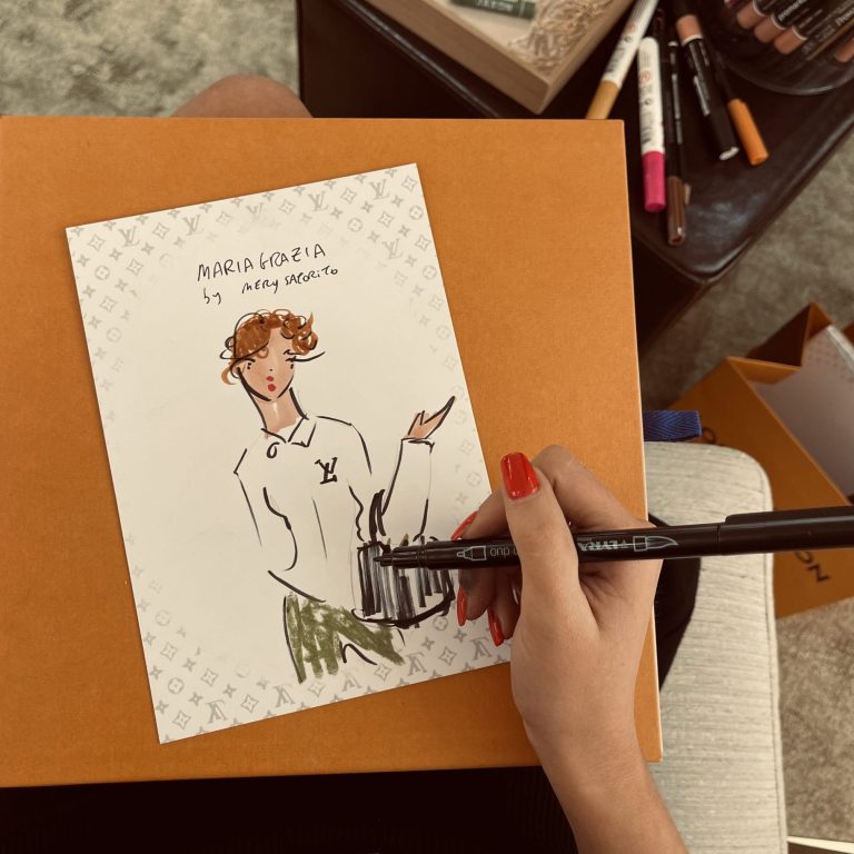 Mery Saporito è un’illustratrice italiana dall’identità visiva decisa e riconoscibile: «Gli occhi, le labbra rosse e lo chignon» sono elementi ricorrenti nel suo tratto, e riflettono uno stile chic e cosmopolita. Originaria di Alzano Lombardo e diplomata al liceo artistico, ha approfondito gli studi in Design della Moda alla NABA di Milano. Ha collaborato fin dall’età di 18 anni con Maison di lusso come Louis Vuitton, Gucci, Chanel e Patek Philippe, creando illustrazioni e live-sketching che trasformano il segno in esperienza. Dal disegno di moda al lancio del suo brand «Dreams Come True», la sua carriera rappresenta un connubio tra creatività e imprenditorialità: come lei stessa ha affermato «Il meglio deve ancora venire».