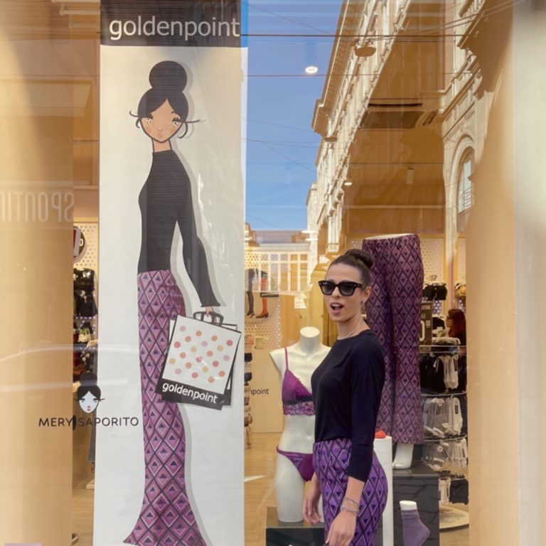La mostra è stata ospitata nell’attico e rooftop di Spazio IlluMi, un luogo sospeso tra luce e design, dove il panorama di Milano diventa parte integrante dell’esperienza espositiva. Quando le chiediamo perché abbia scelto di esporre proprio qui, Mery risponde con chiarezza e gratitudine: «Le mie illustrazioni si sono sempre ispirate alla moda e all’arte. Spazio illuMi è perfetto: vicino al Duomo, luminoso, raffinato, proprio nel mio stile. Sono davvero felicissima di poterle presentare qui».